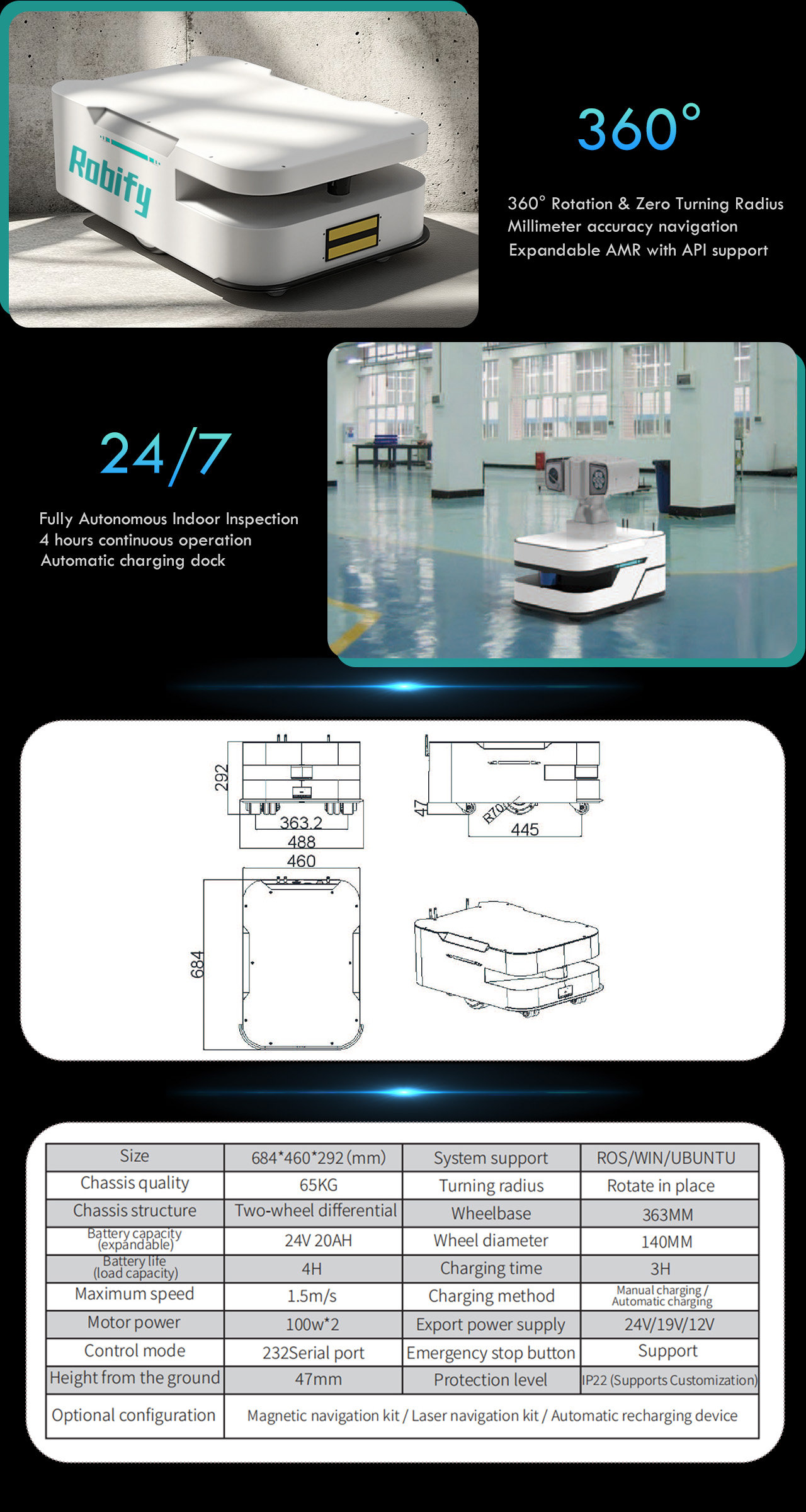 🔧🚀 Endless Customization with Easy Integration — Supporting standard 232/CAN protocols, 485 communication, RobiHaul2.0 is a developer’s dream. Unlock remote control, autonomous navigation, and SLAM applications for warehousing, inspection, logistics, and more with effortless secondary development.